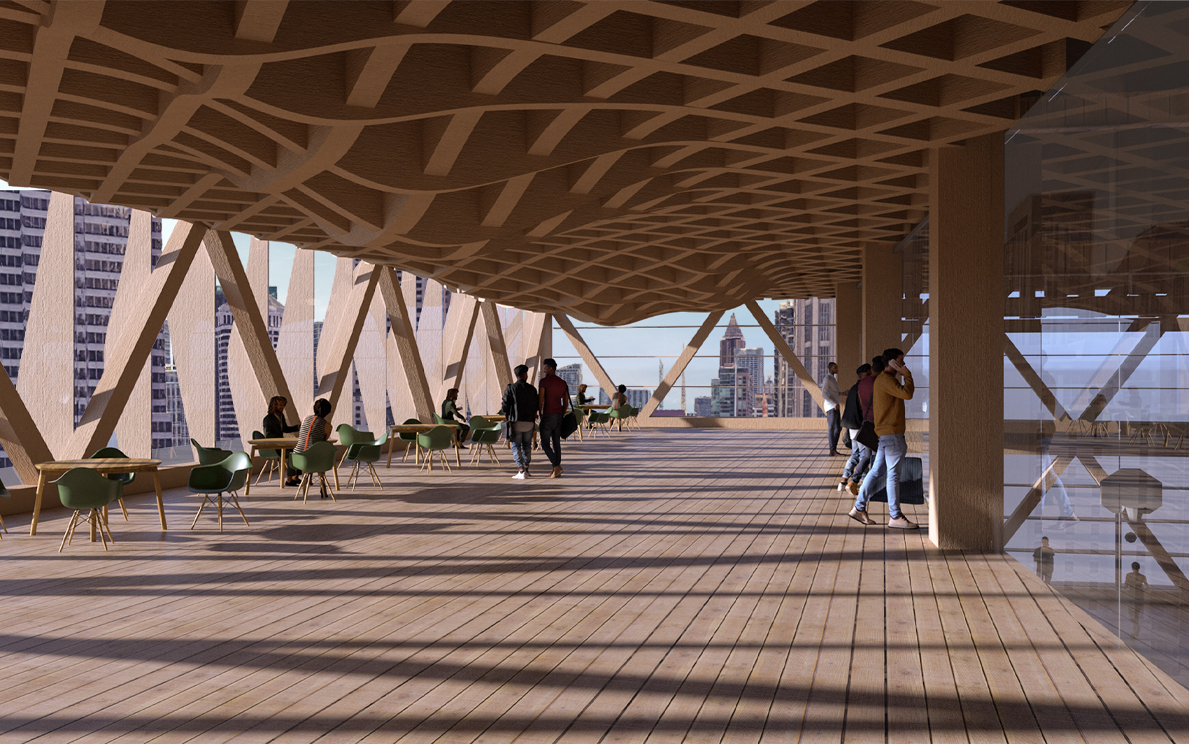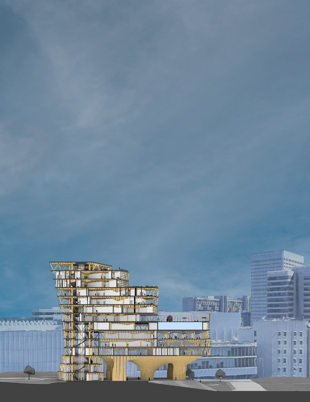 Arts Center Spiral’s goal is to create a sustainable, progressive and equitable mixed-use community space, contributing to the transformation of the city through the integration of biophilic This building, set in Midtown Atlanta, achieves these goals through the design and use of mass-timber, and by creating a structural system that is reflective of systems in nature. This project was submitted to the 2022 ASCA: Timber in the City Competition.